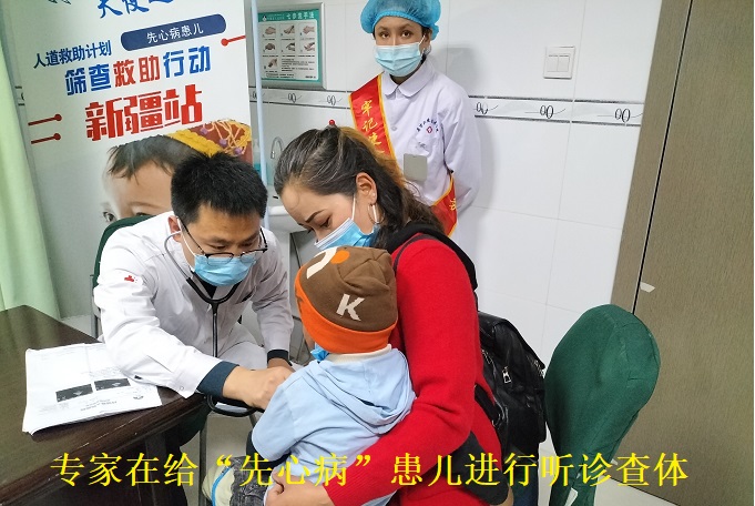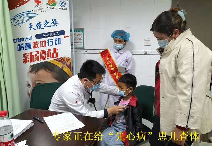 4月13日, 中国红十字基金“天使之旅”在拜城县人民医院开展0-18岁疑似先天性心脏病儿童义诊筛查活动。