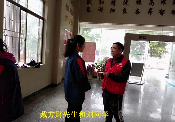 这次活动,戴方财先生还为高二女生刘同学带来一份特别的爱。刘同学是城步一中2019级物理组合成绩排名第一的孩子,来自贫困家庭。母亲乳腺癌急需手术治疗,父亲无固定职业,靠开出租车收入勉强维持一家大小的生活开支。受到东莞事业成功的爱心人士刘泉先生关注,每学期资助刘同学生活费2800元,让刘同学不因家境困难而影响,安心完成高中学业。