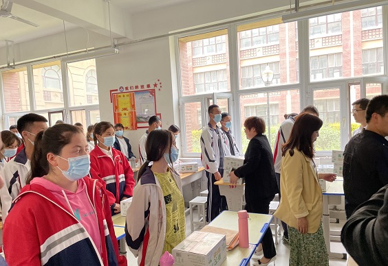 清风网阿拉尔讯 (通讯员:姜红)4月27日下午17时,新疆生产建设兵团第一师阿拉尔职业技术学校18纺织班师生还在教室里紧张、认真的为高考备考。这时,浙江省温岭市副总督学叶文彬带领的温岭送教团一行12人来到教室,把50箱“新农”牛奶逐箱发放到每位学子手中。拿到牛奶的同学,脸上顿时露出了灿烂的笑容……