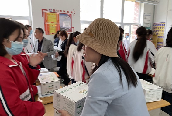 2021年4月27日,应师市教育局邀请,叶文彬副总督学带领专家团队到阿拉尔送教并看望支教老师,郑文兵得知接待行程安排中有去职校的计划,赶紧对接了送教团、职校领导和班主任,委托送教团队给50名学生送上备战高考的慰问品——牛奶,为他们加油打气,收到惊喜的学生们纷纷刷屏朋友圈,直呼“艾力老师”“太暖了”。