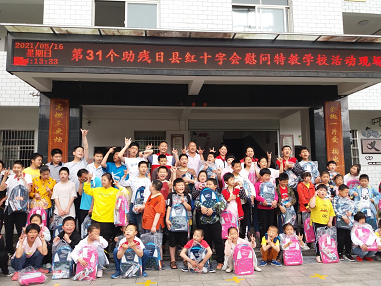 活动现场,红十字志愿者给校园孩子们送去了节日的祝福和礼物。全校86名学生每人都收到了一个价值292元的安全书包和2支高露洁牙膏 。孩子们露出了纯真的笑容,主动拥抱志愿者表示内心的喜悦。