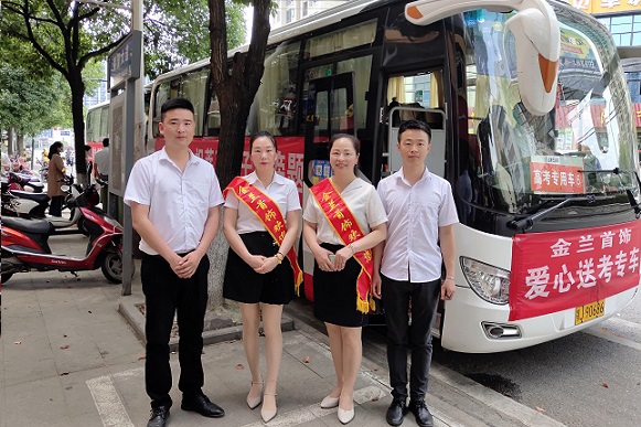 大赵家高中今年在交通酒店统一住宿的考生有127人,这些考生在红安一中和三中参加高考。考生往返交通安全是重中之重。红安金兰珠宝金行负责人一行主动联系学校,表示在高考期间爱心接送考生。