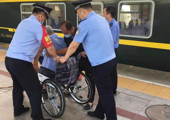 后了解得知,老人今年68岁,从南阳站上车,是到北京来治病的。舒珉大队长和民警听了后,就稳稳地推着轮椅,从站台上经过出站斜坡地道,一直将老人送到了出站口。分别时,老人和老人的家人都感谢不已。(怀化铁路公安处乘警支队: 刘燕轻)