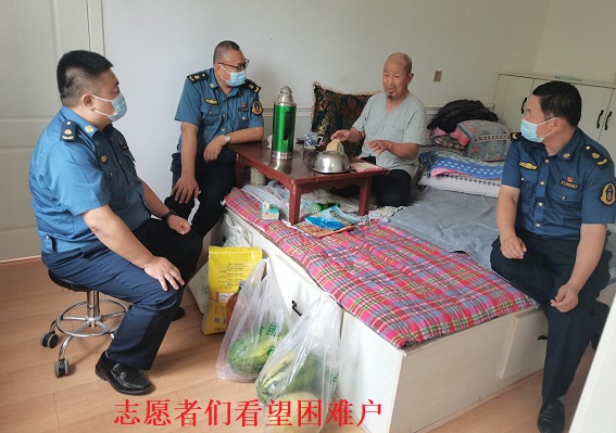 7月21日,尼勒克执法大队志愿者联合社区民警,来到第五社区网格内,共同开展了"邻里守望"志愿服务活动。志愿者们来到社区困难户马佰祥家中,为他们送上了面粉、大米、食用油等生活用品,了解他们的生活需求,关心他们的生活,并叮嘱老人,照顾好自己,鼓励老人对生活不失信心,并衷心地祝福他们身体健康、平安幸福。让老人感受到来自党组织的关怀与温暖的爱。