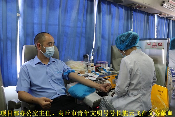 项目部办公室主任、商丘市青年文明号号长熊云飞表示:“目前,全国各地因为疫情的不时出现,不少人在经受着不同的磨砺和考验。而我们能够幸运的平安无事,安心工作,快乐生活,是因为有党和政府的坚强领导,有成千上万坚守一线的医护人员,还有为防疫抗疫不辞辛劳的基层干部和志愿者。在这个时候我们项目部的干部职工前来无偿献血,就是要表达我们对党和政府的感谢,表达我们对为抗击疫情舍生忘死的所有同胞的支持,把爱和善的火种永远传递下去。”
