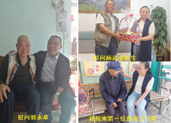 10月14日,医院领导班子分别到退休老职工郭永皋、杨正勤、杨武家中,到老患者王子荣家中走访慰问。在走访慰问中,院领导班子与老人们促膝交谈,亲切询问他们的起居生活情况,叮嘱他们要保重身体。