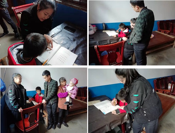 下午1点,在黄山坪学校校长何勇的带领下老师们来到该校辖区的陈家坊镇檀木村8组村民朱军家中,给朱军今年9岁的智障儿子送教。何校长先是询问朱军家中的相关情况,并给朱军智障的二儿子朱晨曦送上教科书、铅笔和写字本等物品,随后,王顼老师用亲切的语言、和蔼的笑容对学生进行教育引导,她采用现场教学,先教学生认读“天、地、人、你、我、他”,然后,王老师手把手地教学生写“天、地、人、你、我、他”等字,同时她应用恰当的教学手段帮助智障学生拓展词汇,活用词语,精心进行康复训练,活动简单有效,得到了家长和当地群众的一致好评。