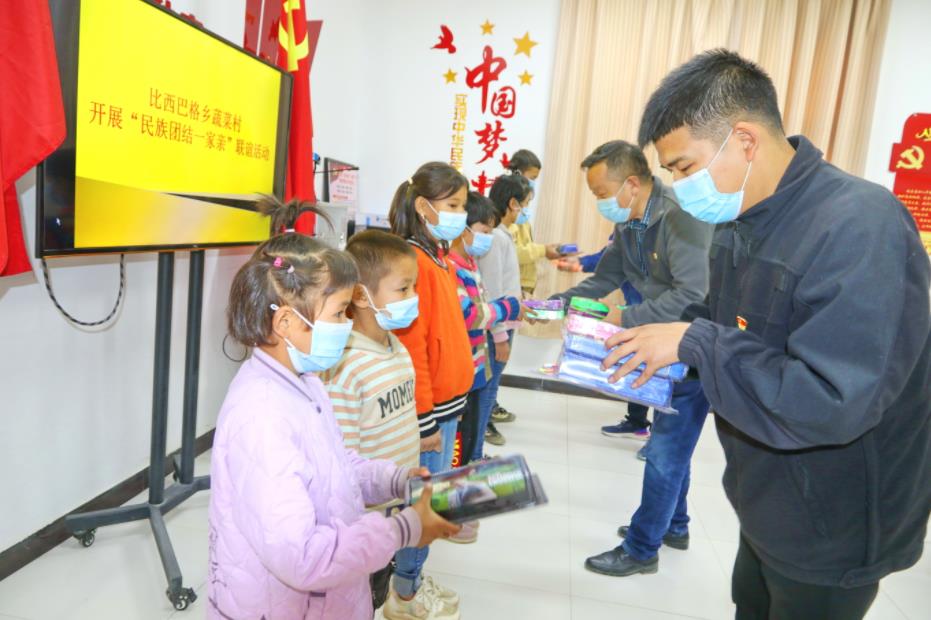 10月28日,国家能源集团新疆能源责任有限公司驻库车市比西巴格乡蔬菜村工作队队员为困难家庭儿童赠送学习用品。连日来,该乡结合“我为群众办实事”实践活动,组织党员干部深入基层一线,看望慰问困难群众,架起干群“连心桥”。