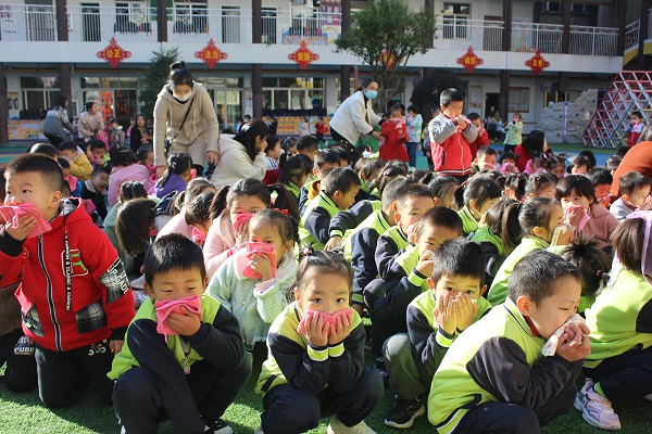 清风网讯(通讯员: 程伟、王志敏、余昭霞) “请大家注意不要惊慌,这是消防演练以及消防烟感和喷淋系统试运行,各班老师请带领好孩子按照指定路线有序撤离……”11月9日上午8点50分,英山县县直机关幼儿园消防控制室内警铃大作,各个楼层的声光报警器和消防广播响起,全园800多名幼儿在老师的全程护送下猫腰、捂鼻,迅速撤离到安全地带,历时3分12秒的时间,消防演练活动如期顺利完成。