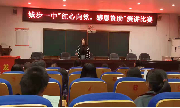 清风网讯(湖南城步一中:石乐楚)2021年11月11日晚,通过各年级的预赛,最后选出的6名优秀选手在学校阶梯教室进行《红心向党 感恩资助》演讲的决赛。其中刘杨灼、陈琪同学脱颖而出成为本次比赛的一等奖获得者。这是城步一中向学生进行“受助”思想教育的一个缩影,充分体现出困难学生资助工作中“励志有为与感恩回馈”等同重要的资助工作指导思想。