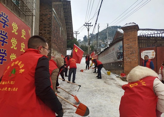 26日,茅坪镇迎来今冬第一场雪,为小镇增添了一抹别样的景色,同时也带来了一些安全隐患,路面结冰,来往行人和车辆通行存在打滑风险,道路通行不畅。为此,该镇及时在结冰路面设置警示牌,提醒过往行人车辆注意出行安全,并发布倡议书,动员广大党员干部和志愿者参与扫雪除冰志愿服务活动,通过撒盐、铲冰、扫雪等方式清理道路积雪,铲出一条安全干净的便民通道。