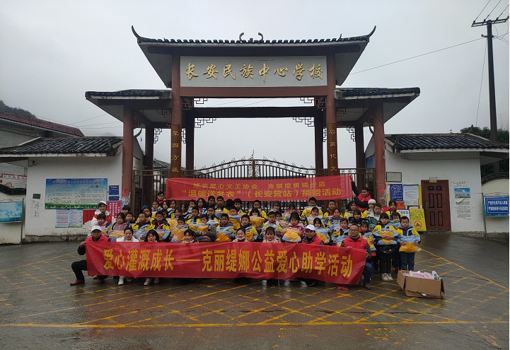 本次“克丽缇娜公益”共向长安营镇民族中心学校的50名偏远地区、贫困、成绩优异的学子发放了50套爱心暖冬衣、50个精美文具盒和体育器材。