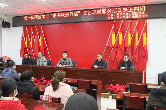 清风网讯(四团文体广电服务中心:孙善峰、 姚吕)为弘扬中华民族传统文化,营造喜庆祥和的新春气氛,近日,由新疆生产建设兵团第一师阿拉尔市师市文联、第一师四团党委主办,第一师四团文体广电服务中心承办的“送春联送万福”文艺志愿活动走进第一师四团,为四团居民送上新春佳节的美好祝福。