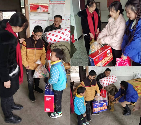 英山司法局党组成员、工会主席徐友林带领(老中青)爱心妈妈“星火传递”于1月20日下午,带上米、油、零食、棉袄、毛毯等物资,来到毕升故里草盘镇牛岭村刘香,韩婆村王东来两个小明友家开展慰问,让两个小朋友感受到这个冬日暖阳。