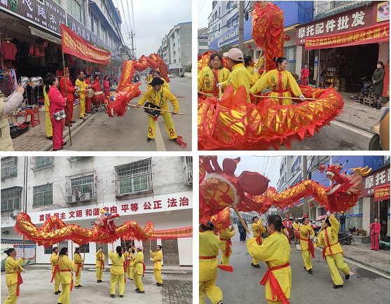 此次活动以“正月舞龙闹元宵,喜气洋洋迎春来”为主题,由杨柳湾镇女子舞龙队组成志愿服务队伍,该志愿服务队队员年龄最大的有71岁,参加活动仍然精神抖擞,表演节目活力四射。随着一面大锣鸣锣开道,活动正式拉开帷幕。一条红色巨龙穿街过巷,开始逐街拜年,为大家送上新年祝福。只见舞龙队队员们双手高举舞龙杆,兴高采烈地挥舞着,彩龙时上时下,翻江倒海,活灵活现,随着锣鼓声此起彼伏,热闹喜庆的氛围感染了不少闻声赶来的村民,人群中不时发出阵阵掌声和欢呼声。