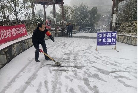 各村党员、村干部积极响应号召,充分利用村级广播,微信群、入户等方式广泛宣传低温雨雪凝冻天气注意事项,同时对不具备通行条件的路段设置警示牌,及时做好道路清障、除雪和车辆疏导等工作,切实保障人民群众生命财产安全。