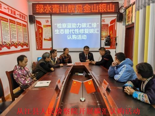 2022年7月,从江县人民检察院受理县公安局移送审查起诉韦某滥伐林木一案,经审查,韦某无证采伐的面积达27.4亩,蓄积346.5立方米。韦某滥伐林木数量大,对当地森林资源造成严重破坏,韦某不仅要承担刑事责任,还应承担生态环境损害赔偿民事责任,虽然当地村民已在案发地进行补植复绿,但韦某滥伐林木造成的生态服务功能损失尚未得到有效恢复。11月16日,从江县人民检察院在县斗里镇湾里村、翠里乡宰转村开展碳汇认购活动,韦某现场通过贵州省单株碳汇平台向当地31户农户购买8768株碳汇,折合人民币26304元。认购活动结束后,检察官以案释法,在向当地村民介绍“碳汇”概念的同时,宣传“绿水青山就是金山银山”的理念,引导村民主动保护好生态环境。