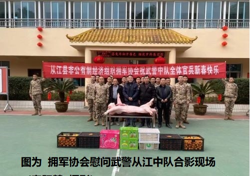 又是一年春节到,从江县非公有制经济组织拥军协会积极组织会员买水果、杀大猪,敲锣打鼓,于1月18日到县人武部、武警从江中队和从江消防救援大队开展春节拥军慰问活动,向他们致以节日的祝福和崇高的敬意。县退役军人事务局一级主任科员陆华超陪同参加。