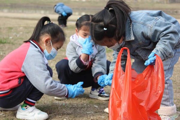 这次实践活动主要是清理莲花小区“一河两岸” 河道垃圾。活动中,一群戴着口罩、手套的“环保小卫士”们,手提垃圾袋,来回奔跑在河滩上,孩子们不怕脏,不怕累,三个一群、五个一伙,互帮互助,很快把地面上的塑料袋、废纸、饮料瓶等清理干净,志愿者教师将所有垃圾送往固定垃圾箱中,宽广的河道在老师和小朋友们忙碌的身影中变得清洁、干净。