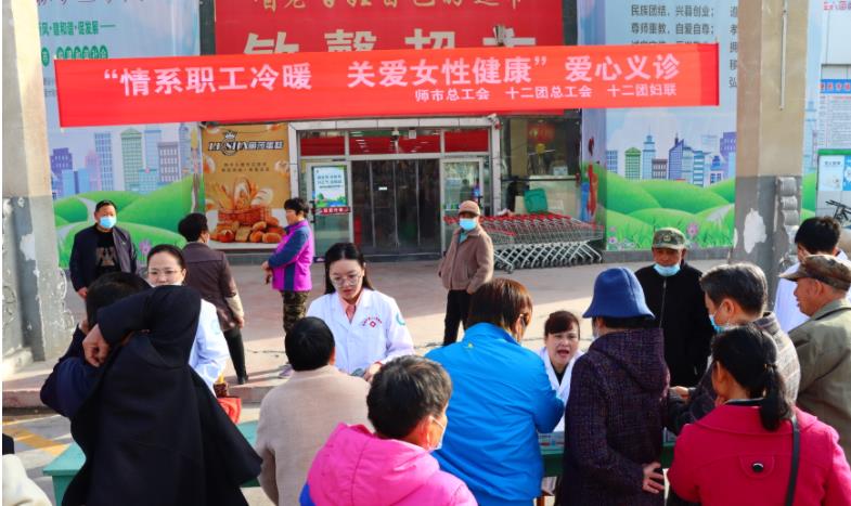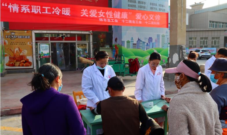3月7日上午,第一师十二团医院工会开展“三八”国际妇女节暨心系职工冷暖关注女性健康义诊活动,将健康送到十二团辖区职工群众的家门口。
