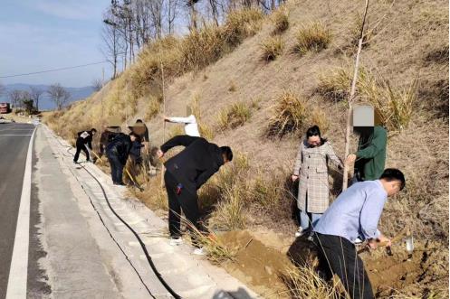 在第45个植树节来临之际,2023年3月10日上午,英山县石头咀镇过石线沿线来了13名特殊的志愿者,他们是石头咀镇辖区内的在矫青壮年社区矫正对象,正在司法所工作人员的带领下积极开展植树公益活动。