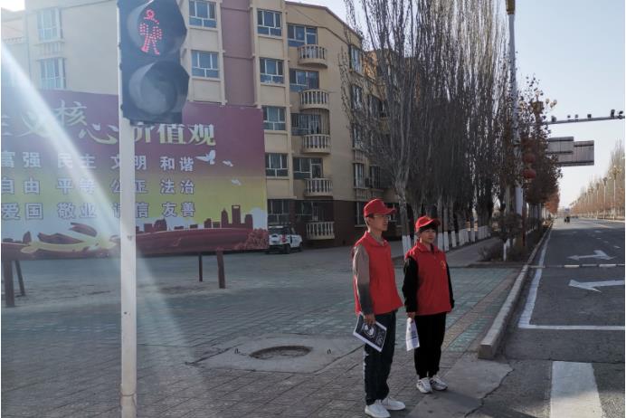 通过文明交通活动,社区志愿者用实际行动,践行雷锋志愿精神,倡导文明交通观念,为辖区广大居民群众营造安全、顺畅的道路交通环境。(一师三团光明路社区:崔丽)