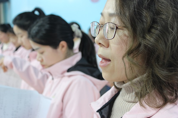 周三是大合唱。定期进行专业知识及教学方法培训,从规范的、系统的基础训练抓起。音乐指导老师詹竹楠先从发音特点,再到合唱的高声部、低声部教起,不断打磨技术与情感的处理,让大家在横向与纵向的声音上有最基本的把握。