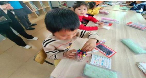 (图为孩子们在整理画笔)