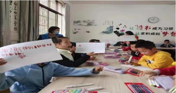 在科普授课结束后,科技队队员们询问小朋友们近期的学习情况和生活状况,并向小朋友们发放了精美文具礼品。队员们引导小朋友们用发放的画笔在绘图纸上绘画,并让小朋友们写下自己的理想与未来。小朋友们根据科普课的授课内容,用绚丽多彩的画笔描绘了“光的反射”等科学原理的演示过程,并在绘画纸上留下了话语,“谢谢你们教我光的反射,色散”,“我之前没有上过这种课,我感觉上这种课很有趣”。