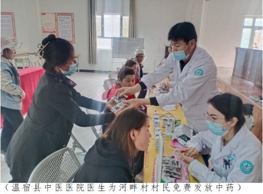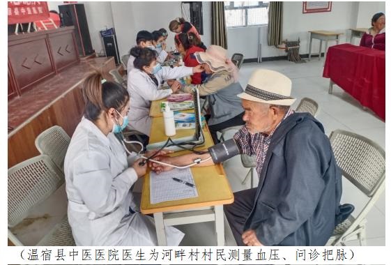 河畔村村民在工作队的组织下有序就诊。温宿县中医医院医务人员热情周到为每位村民提供“义诊+科普+送药”服务。他们耐心细致为村民问诊把脉,测量血压,询问以往病史,查看以往病历和检查结果,为村民提供科学具体的诊疗方案和详细的健康知识咨询,普及常见病、慢性病相关知识。医务人员还免费为村民赠送了常用药品,指导他们合理用药。