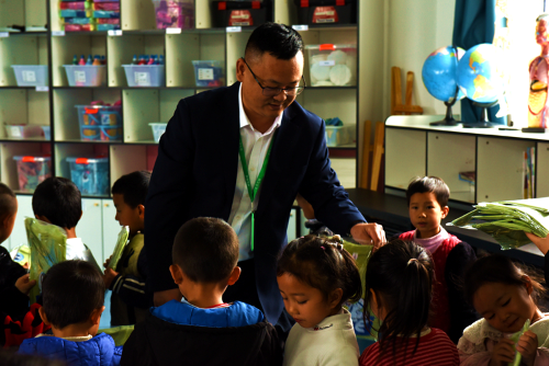 捐赠仪式上,何继涛一行向全体幼儿小朋友赠送了新衣服,并勉励小朋友们要听好老师的话、开心地成长、做最可爱的好孩子、愉快地过好“六一”儿童节,小朋友高举新衣服,欢欣鼓舞,并表示感谢。
