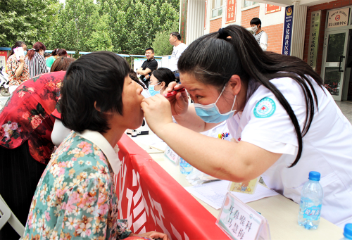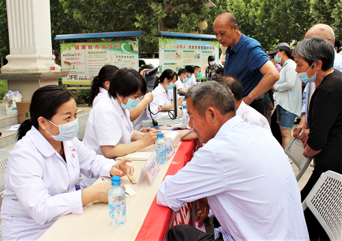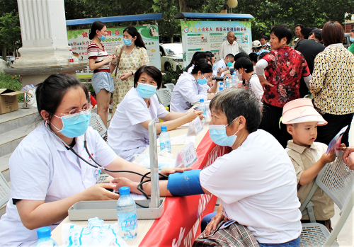 夏日的太阳很快就爬到了头顶,文化路社区门诊前是硬质路面,没有树,专家们完全暴露在明晃晃的阳光里,他们的额头上都渗出了汗水,但他们根本顾不上擦,甚至连水都顾不上喝。他们或耐心倾听群众倾诉病症、或为群众认真做健康检查、或为群众开处方、或指导他们如何进行正确用药、健康理疗......就这样,在炎热的空气中,在耀眼的太阳光下面,专家们坚持开展爱心义诊足足四个小时,受益群众达200余人。