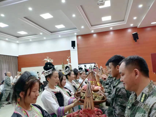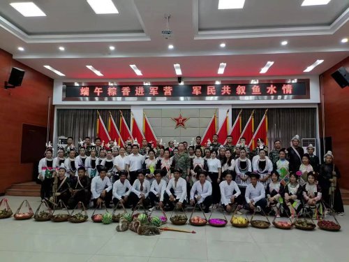 本次慰问,分别为县消防救援大队、县人武部、武警部队送去了粽子、鸭蛋、香蕉、苹果、西瓜、香猪、稻田鸭等慰问品30余挑。双拥模范村岜沙村和银下村的苗侗村民身着民族盛装自发地为驻从部队献唱侗歌,跳芦笙舞,以此向驻从官兵致以节日问候及衷心的感谢。驻从部队官兵感谢从江党政和人民群众的关怀,并表示将继续保持优良传统、立足岗位、爱岗敬业,扎实做好本职工作,为从江的人民群众幸福生活、社会和谐建设站好安全岗位。