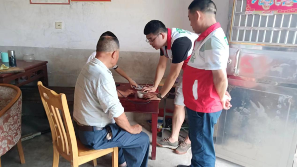 6月28日,武蛟乡卫生院党支部组织家庭医生签约服务团队携带体检设备和药品来到武蛟乡灌湖村,为该村部分老弱病残的老党员进行测血压,验血糖等体检,与他们促膝谈心,仔细询问他们的身体状况,并询问病情,耐心细致的为其分析病因,讲解卫生保健知识,饮食安全、合理用药等卫生常识,并为他们送去了常用药品。该村老党员李汉冀是一位“中风”多年的病人,因“中风”后遗症致走路困难,看到武蛟乡卫生院医务人员带着检查设备和药品来到家中为自已看病,激动地说“现在的医生就是好,经常上门为我们体验,还免费为我们送药,真是我们的贴心人”。