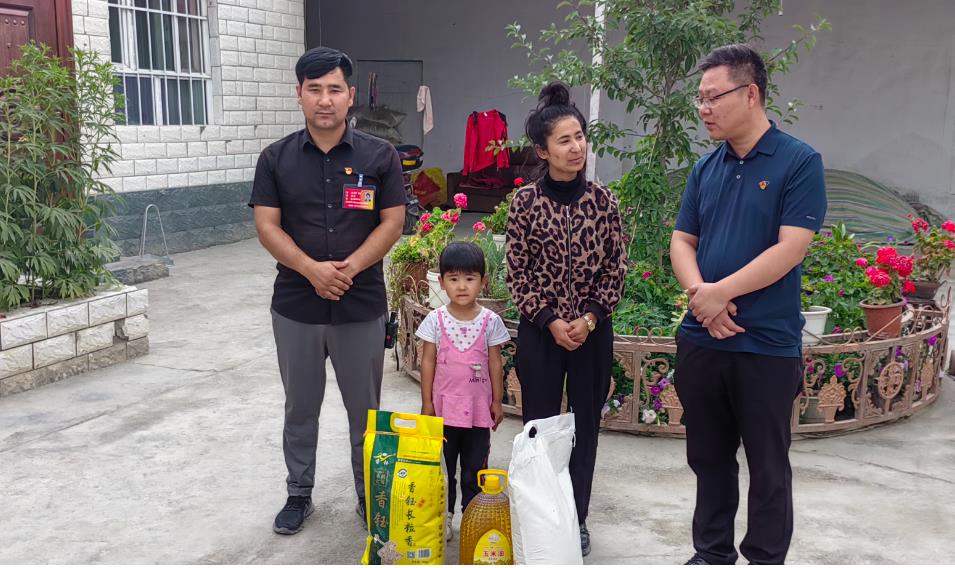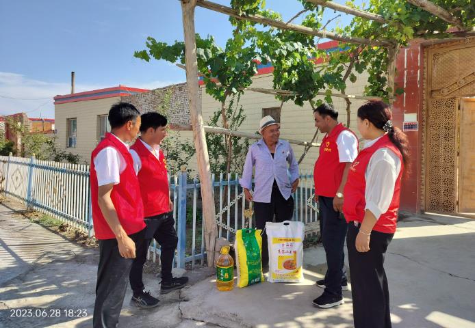 为庆祝中国共产党成立102周年,落实党内激励关怀机制,6月28日,在古尔邦节和“七一”建党节来临之际,阿克苏地委史志办驻温宿县托乎拉乡河畔村“访惠聚”工作队、村党支部开展了“情暖党员心”慰问活动,对河畔村15名党员和温宿县“道德模范”进行了走访慰问,给他们送去了大米、面粉、清油等慰问品,提前向他们送上党组织的关怀和节日的祝福。