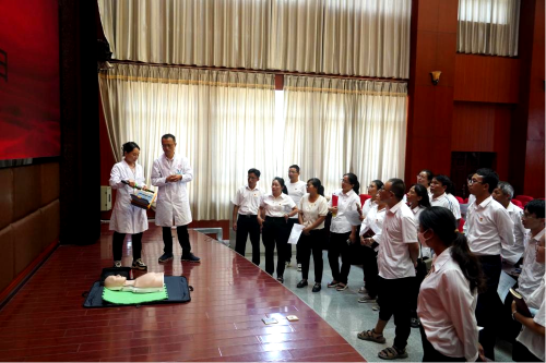 中山大学眼科中心专家于珊珊博士为师生开展眼健康知识宣讲;中医儿科门诊党支部志愿者开展急救知识心肺复苏技能培训;外科党支部志愿者为50名学生进行视力筛查。