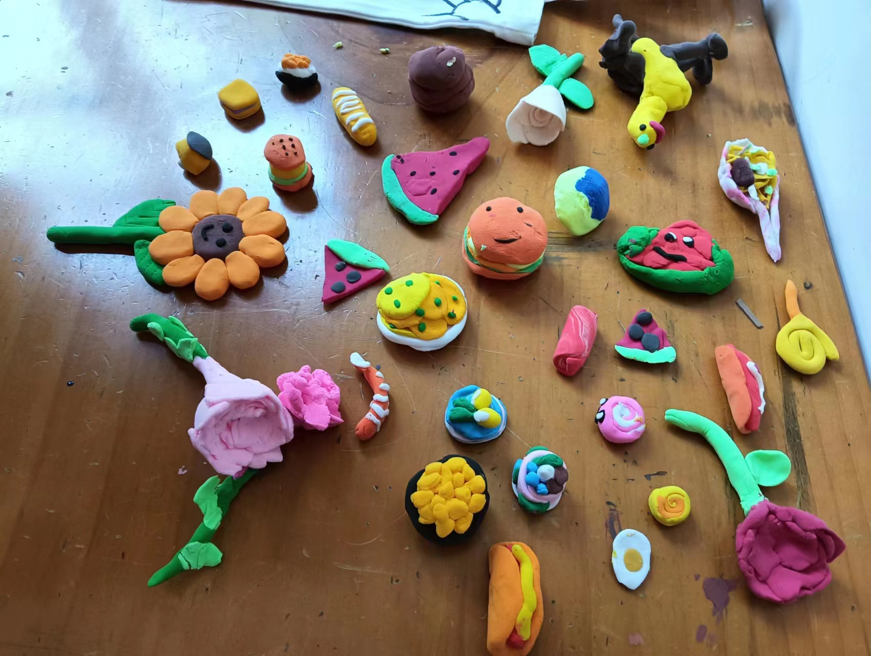 (图为队员与小朋友黏土创作作品)