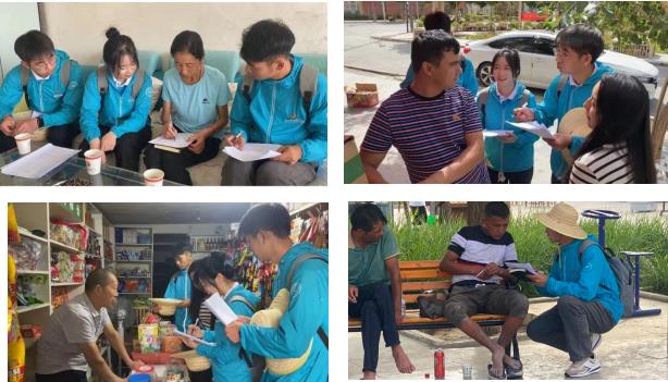 为深入了解民族地区国家通用语言文字推广及使用情况,实践队员面向高峰社区居民开展了国家通用语言文字调研活动。队员们通过发放问卷、一对一访谈等形式,了解民族地区群众的语言使用情况、普通话水平、普通话使用范围等信息。