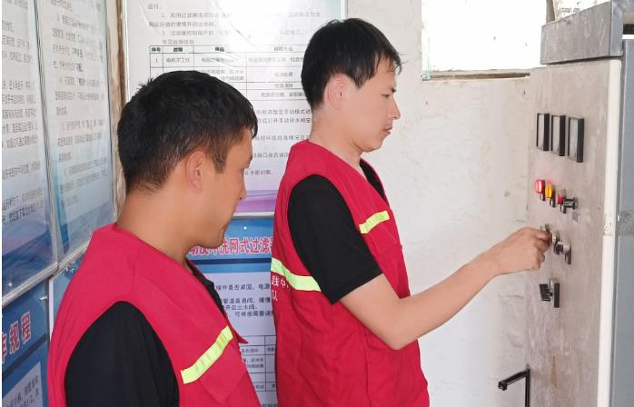 在水泵房里,志愿者和用水合作社负责人一起检查机井、配电柜等农业抽水灌溉用电设施,及时帮助解决各类安全用电隐患,同时帮忙开水泵,在农户的田块里整理滴灌带,跑前跑后忙不停,不久,清凉的水流便顺着滴灌带源源不断涌向农田,乡亲们脸上绽开了笑颜。同时,志愿者还多次深入田间地头,准确掌握农作物灌水、需水情况,“零距离”了解群众意见及灌溉需求,保证应灌尽灌。
