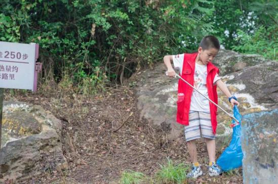 参加本次活动的志愿者大都是来自马诸镇中心小学502班学生及部分学生家长。他们身穿红色马甲,手拿垃圾袋和垃圾钳,从公园出发,沿着近7公里长的渚山步道拾级而上,一边欣赏美景,一边捡拾路上及路旁草丛中被游客丢弃的饮料瓶、纸屑、果皮等垃圾,用自己的实际行动传递一份守护家乡生态环境美的爱。