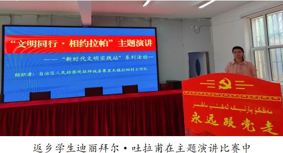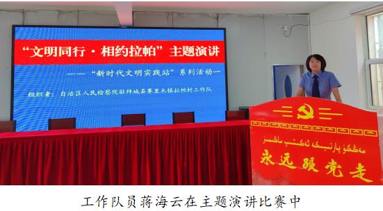 为了进一步发挥好新时代文明实践阵地作用,让村民积极参与文明实践活动,自治区人民检察院驻拉帕村工作队策划了一场“文明同行·相约拉帕”主题演讲比赛。