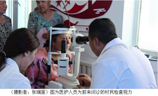 医护人员为前来问诊的村民答疑解惑,耐心地为村民把脉、测量血压、检查视力,并给予切实可行的治疗建议,指导群众合理用药,并把移动CT车开到了村委会院子,为有需要的村民进行检查。医护人员为群众发放健康知识宣传彩页,并用通俗易懂的语言向村民宣讲老年人常见病等知识,普及疾病预防及治疗的相关知识。