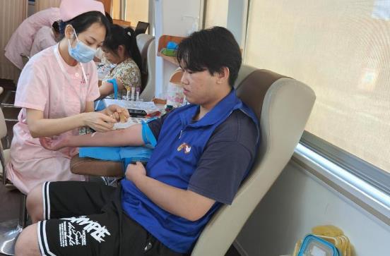 献血现场,返乡大学生志愿者在红十字会工作人员的引导下,有序填写《无偿献血登记表》,认真聆听献血过程中应注意的事项,完成信息录入、血压检测、初筛检查等流程。随后,大学生志愿者们分批来到移动献血车上,挽起衣袖,将浓浓爱心融入汩汩热血。