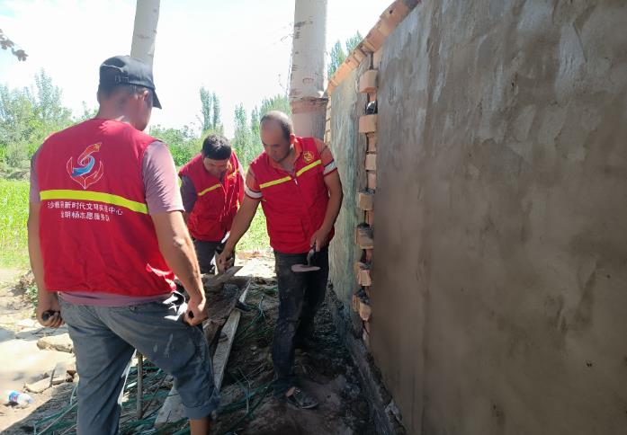 近日,在努尔巴格乡亚当村内驻村工作队和村干部及新时代文明实践党员志愿服务队正在帮助群众筑建围墙。