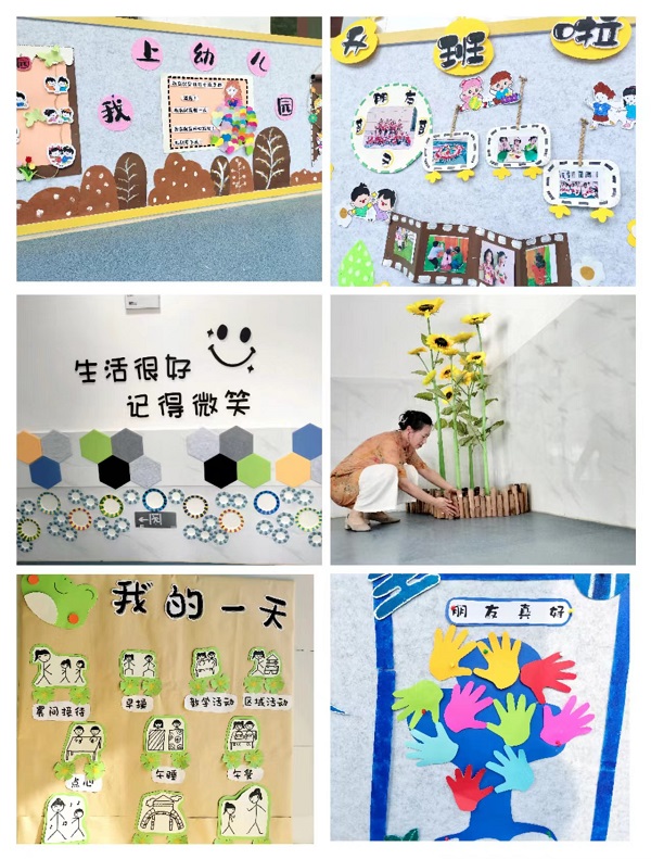 整理完外部环境,紧接着就是“环创”。“环创”是幼儿教育的一个重要资源,良好的教育教学环境是孩子们无声的老师,它对幼儿的影响是隐性的,也是巨大的。在教师们的双双巧手下,园所环境焕然一新,凸显了童趣和园所环艺特色。教师们大胆创新,根据各年龄段幼儿的年龄特点,利用丰富多样的材料,创设出了各具风格的室内环境,形式各异的主题墙、温馨的家园联系栏。