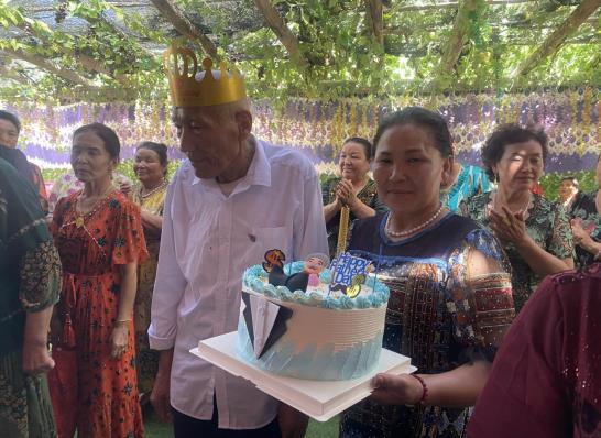 活动上,为老年人精心准备了“爱心午餐”,并为老人测血压,宣传防病、电信诈骗等方面的知识。 驻村工作队还特意准备了蛋糕,为老人过生日,送去真诚的祝愿。(库车市塔里木镇:刘纹歌)