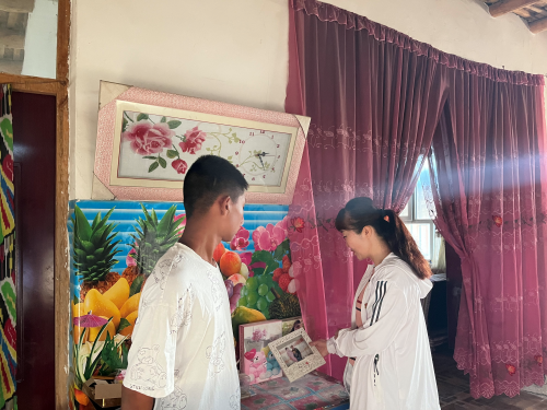 温宿县妇幼保健院驻阿热勒镇尤喀克麦盖提村工作队队长、第一书记刘文先开口了:“祖里亚尔的情况我们都了解了,大家看看我们一起想办法帮助他解决上学的问题,工作队员都主动的自发进行捐款,并给祖里亚尔·尤勒瓦斯和其父亲尤勒瓦斯·托乎提做思想工作鼓励父子俩重振生活信心,好好劳动、好好学习,最后达成一致,祖里亚尔·尤勒瓦斯愿意拿着捐款继续去上学,尤勒瓦斯·托乎提也表示一定要戒酒振作起来外出务工挣钱供孩子继续上学。