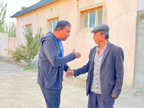 9月6日这天,阿热勒镇尤喀克麦盖提村一组学生祖里亚尔·尤勒瓦斯因为家庭贫困辍学跑回家中,“读书是大事,是可以有出路的事,不能让孩子就这么被耽误了,就算是天大的事也不能耽误了上学。”温宿县妇幼保健院驻阿热勒镇尤喀克麦盖提村工作队队长、第一书记刘文对工作队员说着便急匆匆前往其家中了解情况。