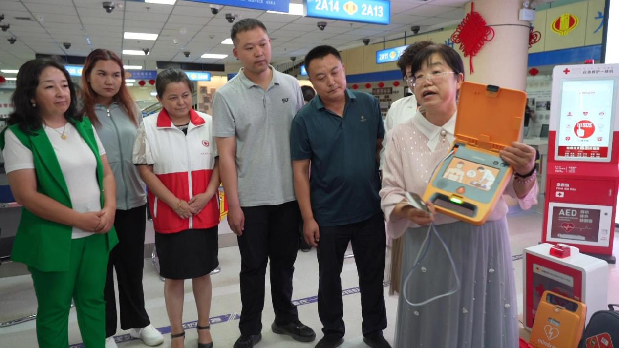 库车市红十字会专职副会长丁长琴表示:“为增强全社会的生命安全保护意识,以实际行动践行“人民至上、生命至上”的理念,今天,库车市红十字会为政务服务大厅、天山神秘大峡谷景区和交通局客运站等5处举行应急救护一体机及AED的投放仪式,实现了在人员密集场所配备AED,此次活动是弘扬红十字“救”在身边品牌和“人道、博爱、奉献”的红十字精神的具体体现。”(库车市融媒体中心:歹淑丽)