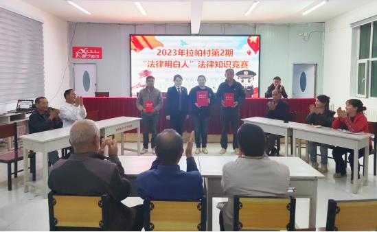 为了进一步推进法治乡村建设,增拉帕村村民学法、懂法、守法、用法意识,发挥“法律明白人”示范引领作用。近日,自治区人民检察院驻拉帕村工作队组织开展了2023年拉帕村第2期“法律明白人”法律知识竞赛活动。